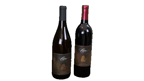 Two Capo Cagna wine bottles, one red and one white, are featured with the animated text "WINE TIME!"