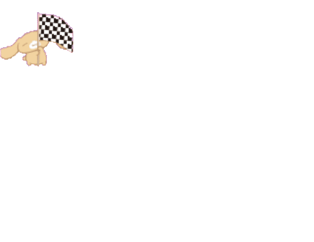 Cinnamoroll rides a tricycle with a "vroom" sound, while another character waves a checkered flag, signaling a race.