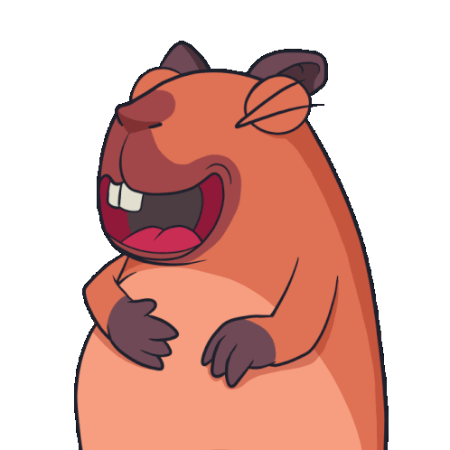 A cheerful cartoon capybara, part of the Cappys NFT collection, laughs with its eyes closed in this animated sticker.