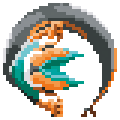 Kamen Rider Capsem Zeztz's iconic emblem, featuring a stylized shark head within a circular design, animated in pixel art.