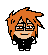 Captainhowdie's Ranfren pixel art character with orange hair and glasses smiles and turns their head.