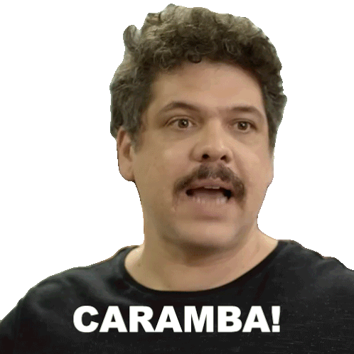 Caíto Mainer, from Porta dos Fundos, reacts with surprise, exclaiming 'Caramba!' while wearing a black shirt.
