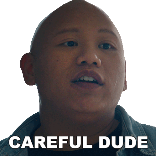 A bald man from Novocaine delivers a casual warning, 'Careful dude,' with a concerned expression.