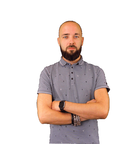 Carel Schrier, a man with a beard, waves hello and then points directly at the viewer, smiling warmly.