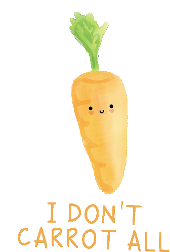 A cute animated carrot wiggles, displaying the pun 'I Don't Carrot All' to express a carefree attitude.