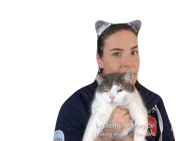 Cristine Raquel Rotenberg, known as Simply Nailogical, wearing cat ears and holding her cuddly pet cat.
