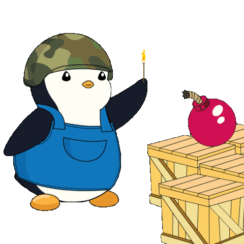 a cartoon of a penguin surrounded by smoke and a white background