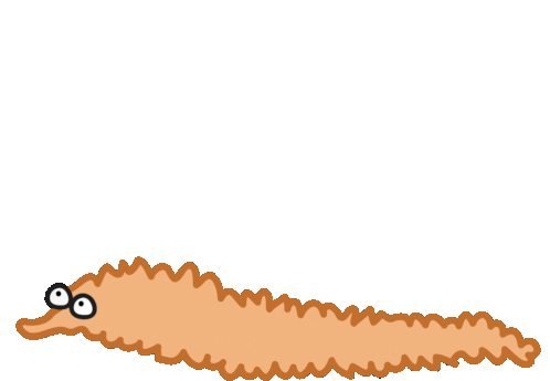 A fuzzy, orange Worm On A String with googly eyes wiggles and moves, bringing a touch of cartoon cuteness.