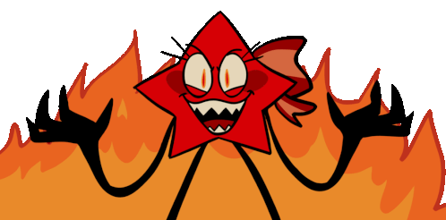 A fiery animated sticker of The Cosmicals' red star character, surrounded by intense flames and radiating power.