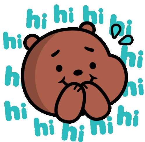Grizzly Bear from We Bare Bears (Ursos Sem Curso) giggles shyly with 'hi hi hi' text, expressing amusement and lightheartedness.