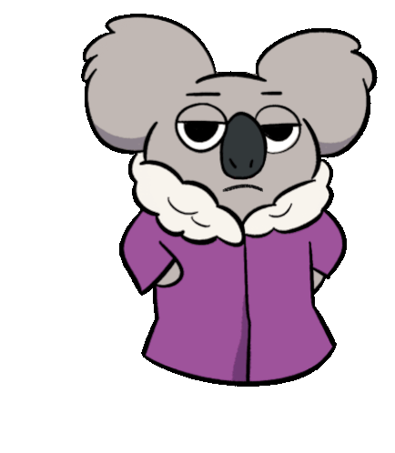 Nom Nom, the koala from We Bare Bears, expresses indifference with a bored look and the word 'Whatever'.
