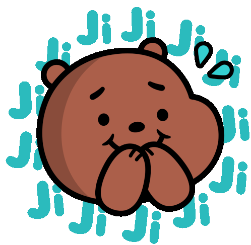 Pardo, the brown bear from We Bare Bears (Escandalosos), makes a shy or nervous laugh with "Ji Ji Ji" text.