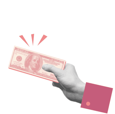 A hand in a red cuff holds a glowing hundred-dollar bill, symbolizing wealth, payment, and financial transactions.
