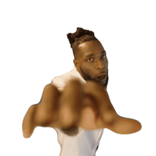 Burna Boy extends his hand, seemingly casting a spell or reaching out, in this mesmerizing animated sticker.