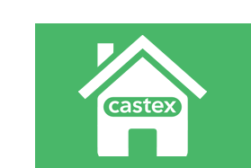 Animated house icon for Castex Pilar Propiedades, displaying 'castex' then changing to '1153659910'.