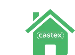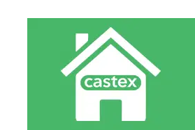Castex Propiedades sticker with text 'Pensar tu hogar' and 'Es posible' on a green grass-textured button.