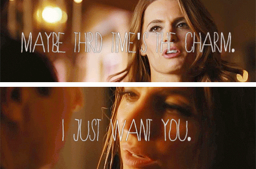 A sticker from Castle featuring quotes 'Maybe third time's the charm. I just want you.' with two women.