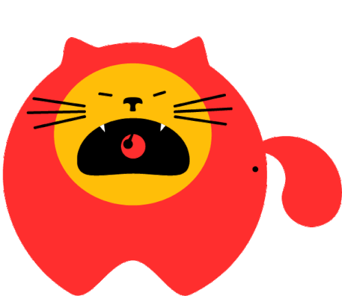 An animated red and yellow cartoon cat with its mouth wide open, appearing to scream or express anger.