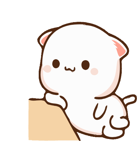 A cute white cartoon cat peeks curiously over a surface, embodying a playful or waiting mood.