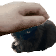 A gentle hand lovingly pets the soft head of a contented black cat, showing affection and warmth in this animated sticker.