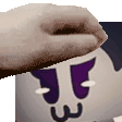 A cute cartoon cat's head is gently patted, causing it to squish adorably in this animated sticker.