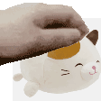 An animated sticker showing a hand gently petting a soft, adorable plush cat, conveying comfort and affection.