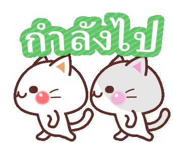 Adorable white and grey cats animated sticker with Thai text 'กำลังไป' (I'm coming), perfect for quick replies.