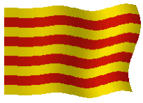 The iconic Senyera flag of Catalonia, featuring bold red and yellow stripes, gracefully waving in the wind.