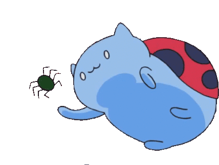 Catbug, the adorable blue creature, playfully interacts with a small green spider, showcasing its cute and curious nature.