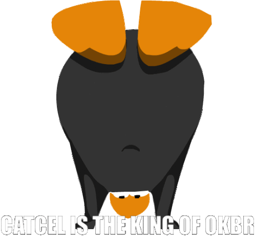 Animated penguin character Catcel dances, proclaiming himself the King of OKBR in this humorous sticker.