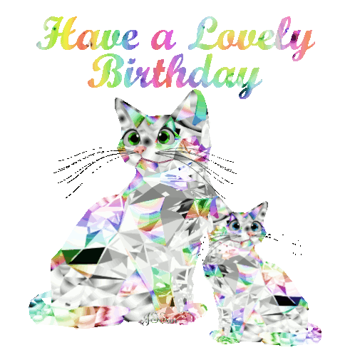 Two sparkling diamond cats, a mother and kitten, wishing 'Have a Lovely Birthday' on a vibrant greeting sticker.
