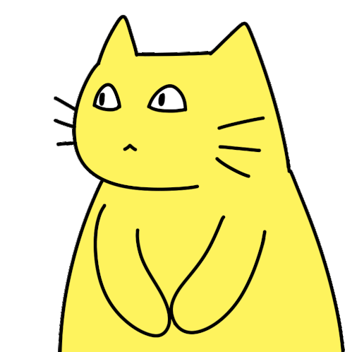 A cute, animated yellow cat stares intently, blinking slowly with wide eyes. Perfect for reaction or curious moments.