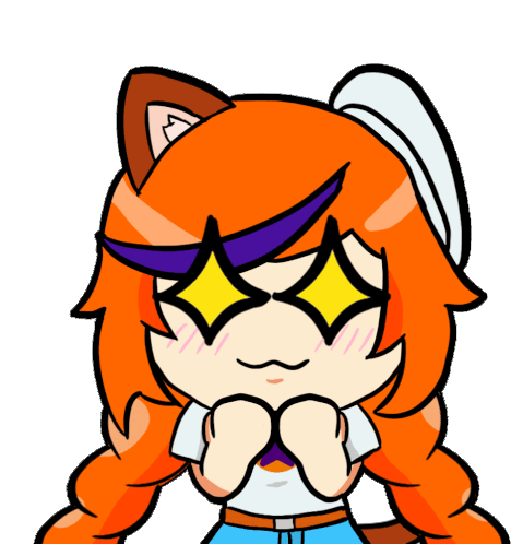 Animated sticker of Catur Caturteer, an adorable anime catgirl VTuber with captivating sparkling eyes.