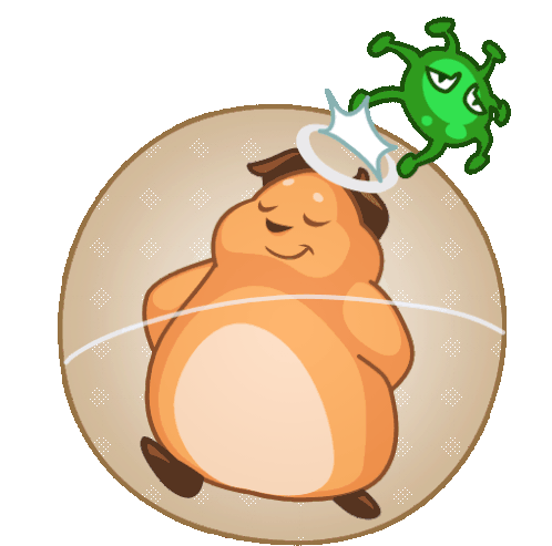 A cute cavy is safely protected inside a transparent shield, fending off a green corona virus.