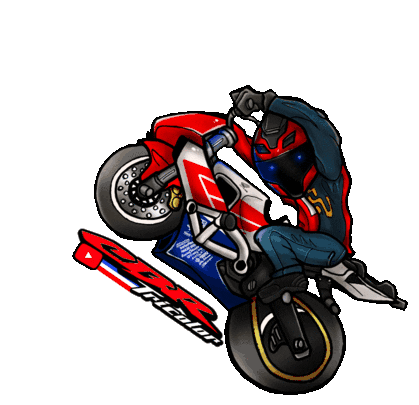 Dynamic animated sticker of a rider on a CBR Tricolor motorcycle performing an impressive wheelie stunt.