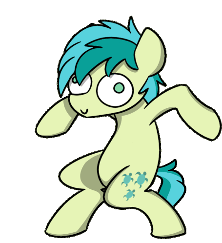 Cchan, the pony-like character with turtle cutie marks, performs a fun and goofy dance with exaggerated moves.