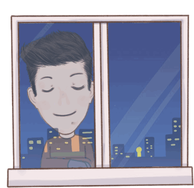 A person watches vibrant New Year fireworks from a window, with their appearance transforming from cartoon to realistic.