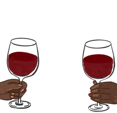 Two hands toast red wine glasses with 'Sip. Sip.' text, celebrating Wineday or a special occasion.