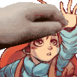 Madeline from the game Celeste receives affectionate head pats in this charming pixel art animated sticker.