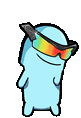 A cool, light blue pixel character from Cellpls Max, wearing stylish rainbow sunglasses and smiling confidently.
