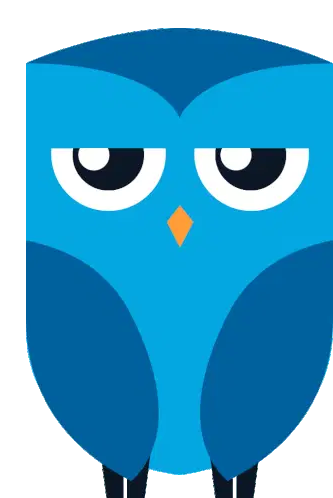 A charming animated blue owl character, representing Cemaco, playfully peeks up and down, revealing its full body.