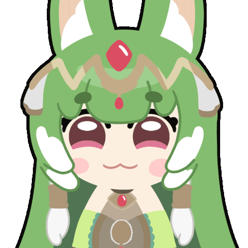 a cartoon of a girl with green hair and a red jewel on her head