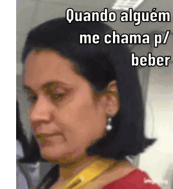 A woman's face transforms into a wide smile, expressing excitement and readiness when invited to drink.