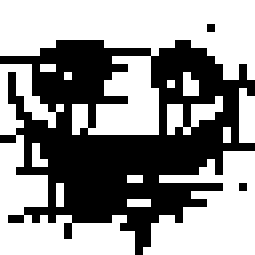 Cg-55 Rooms Low Detailed pixel art face glitches from a creepy smile to a distorted heart shape.