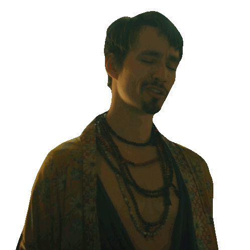 Klaus Hargreeves, portrayed by Robert Sheehan, says 'Cha-ching!' with a satisfied expression, implying financial gain or success.
