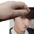 Cha Junho of Drippin in a cute pixel art sticker, showing a gentle hand petting his forehead.