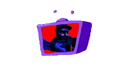 An animated pixel art sticker featuring Chad Escopeta, Mauraso, and Sebasmaualf on a retro purple television, referencing Pizza Tower and Roblox.