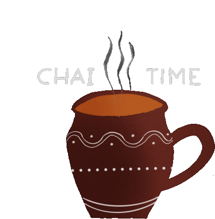 A warm, steaming cup of chai in a traditional kullad mug, with 'CHAI TIME' text, perfect for a relaxing tea break.