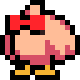 Animated pixel art sticker of Bucky, the chicken from Chainsaw Man, wearing a red bow.