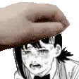 Chainsaw Man's Kobeni Higashiyama cries as a hand reaches out to comfort her, perfect for expressing sadness.